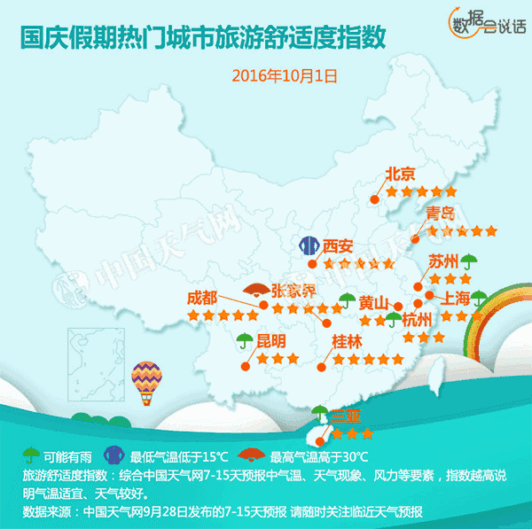 十一期間 國(guó)內(nèi)熱門城市天氣情況